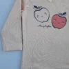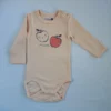 Cotton baby bodysuit with long sleeves, in pink colour with an apples print. With practical snap buttons opening.