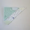 100% cotton bib – bandana, with 2 layers of fabric and a waterproof lining, for greater protection. It has a soft triangle teether at bottom edge, in Pink colour, suitable for relieving gums during the teething period. It closes easily and securely with a Velcro fastener on the back. Ideal for daily use, from your baby’s first meals to toddlers. The fabric is in savanah design, in mint colourway. BPA-free and STANDARD 100 by OEKO-TEX certified.