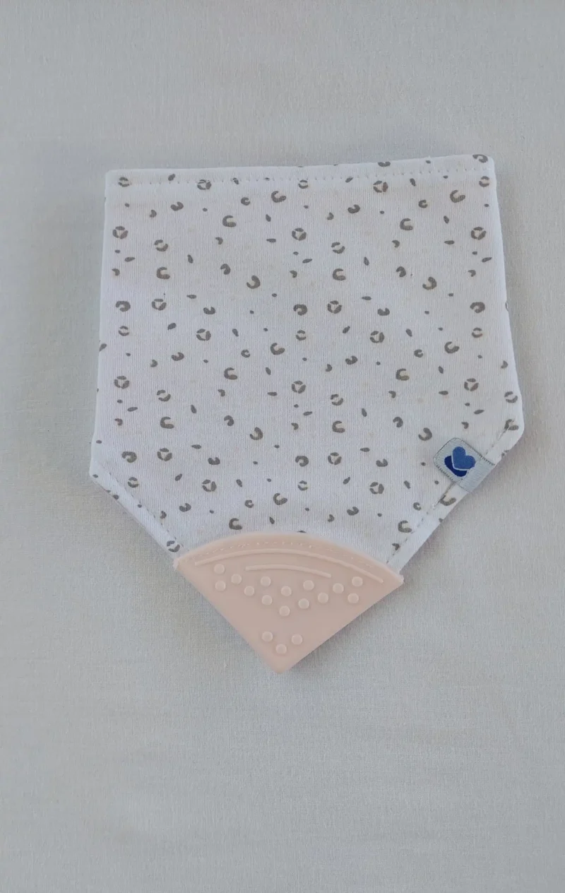 100% cotton bib – bandana, with 2 layers of fabric and a waterproof lining, for greater protection. It has a soft triangle teether at bottom edge, in Pink colour, suitable for relieving gums during the teething period. It closes easily and securely with a Velcro fastener on the back. Ideal for daily use, from your baby’s first meals to toddlers. The fabric is in animal design, in pink colourway. BPA-free and STANDARD 100 by OEKO-TEX certified.