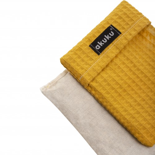 Natural heating pad with cherry stones, ideal for relieving your baby from colic, gas, pain, and even for relaxation before bedtime. The cherry stones it contains retain and naturally release heat, offering uniform and gentle heating. This ensures that there is no risk of injury from hot water, as might occur with traditional hot water bottles. It can also be used cold, as a compress for fever and other cases. Practical removable cover made of 100% cotton fabric, in yellow colour. Before use, consult the instructions for use contained in the package.