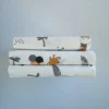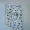 Set of 3 pcs baby crib sheets. The set consists of a top sheet, a pillowcase and a fitted sheet, for a better fit to the mattress. Made of 100% cotton fabric, ideal for all seasons as it allows the baby’s skin to breathe. With a soft fabric and a pleasant design, this set is ideal for everyday use but also a special gift for a baby shower, for visiting the maternity hospital or for a baptism. The set is in white colour with an animal pattern in grey and light blue shades.