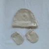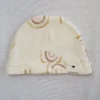Set of 1 baby beanie and 2 newborn mittens. Made of soft 100% cotton fabric that is friendly and safe for baby skin. Essential for regulating baby’s temperature during the first months, but also for protecting them from scratches on the face, that they may cause with their little hands. In beige colour with rainbow design.