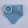 Silicone teething ring with bamboo muslin comforter cloth. Provides relief during teething period and helps with relaxation before bedtime. In light blue colour.