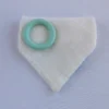 Silicone teething ring with bamboo muslin comforter cloth. Provides relief during teething period and helps with relaxation before bedtime. In white colour.