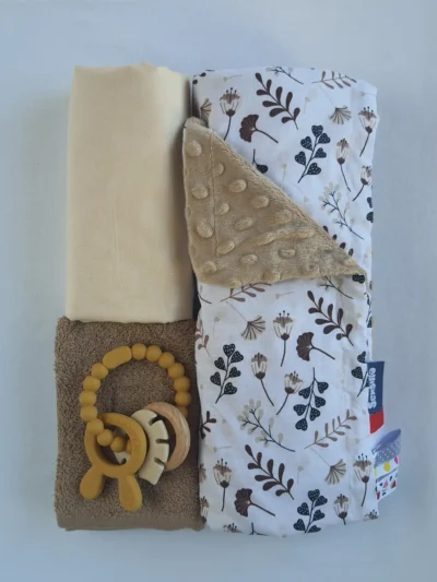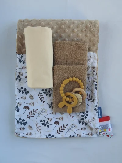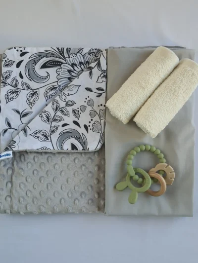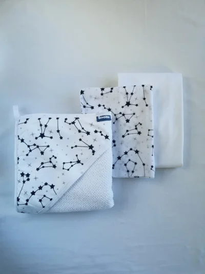Σετ νεογέννητου 4 τμχ σε πουγκί – Πουά Μπεζ