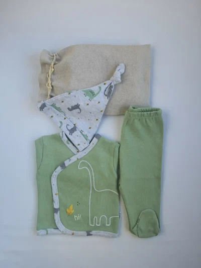 Σετ νεογέννητου 3 τμχ σε πουγκί – Dino Μέντα