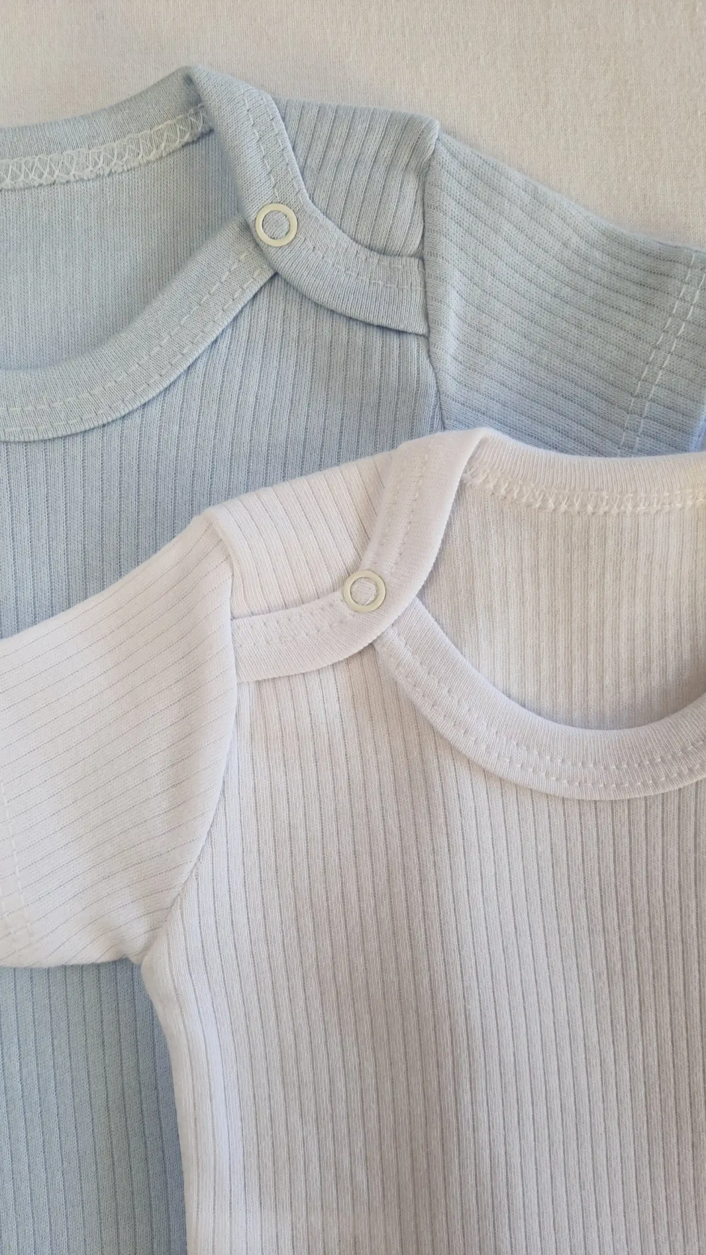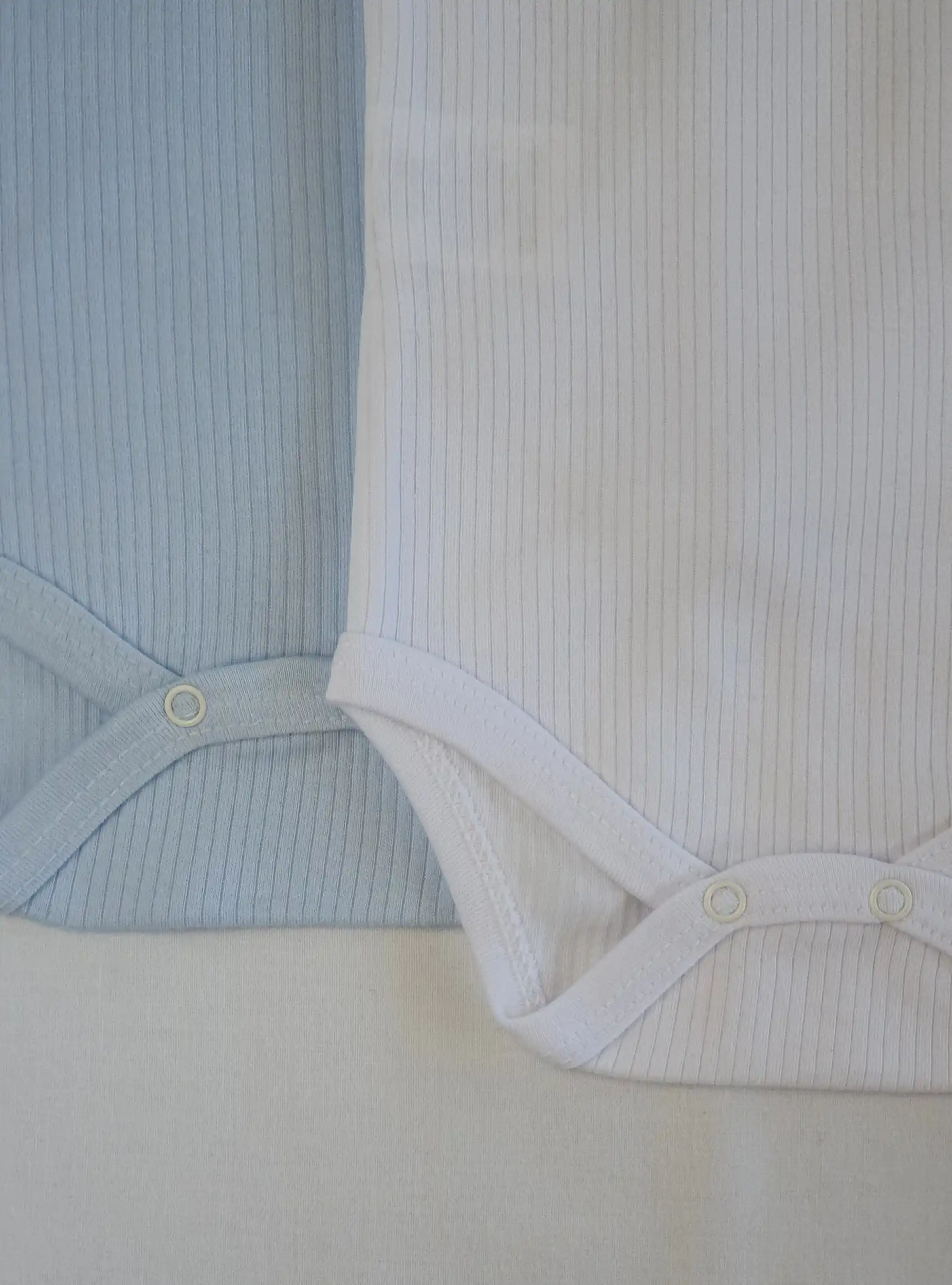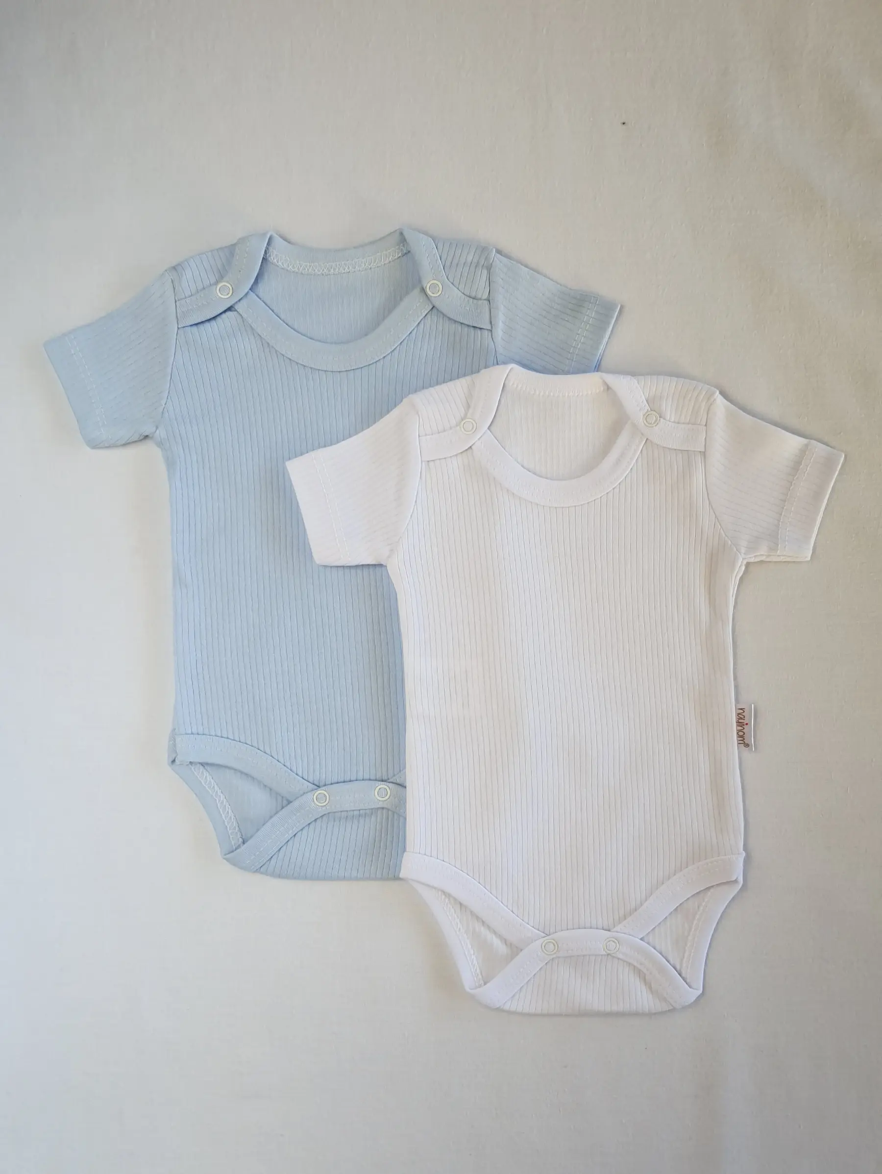Σετ από 2 βρεφικά κορμάκια με κοντό μανίκι, σε 2 χρώματα. Κατασκευασμένα από 100% βαμβακερό ύφασμα που είναι φιλικό και ασφαλές προς το βρεφικό δέρμα. Ιδανικό για καθημερινή χρήση όλες τις εποχές καθώς προσφέρει άνεση και απαλότητα στο μωρό σας. Σε ριπ ύφασμα μονόχρωμο. Πρακτικό άνοιγμα με τρουκ στον λαιμό και στο κάτω μέρος για μεγαλύτερη ευκολία. Το σετ περιλαμβάνει ένα κορμάκι σε λευκό χρώμα και ένα σε γαλάζιο χρώμα.