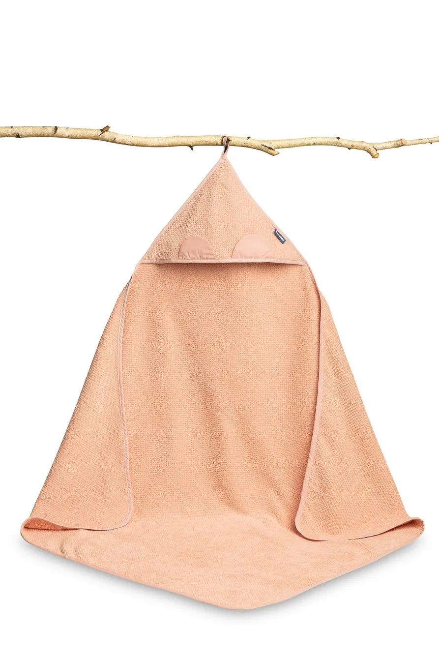 Βρεφική πετσέτα με κουκούλα για το καθημερινό μπάνιο, σε ροζ χρώμα και διακοσμητικά αυτάκια στην κουκούλα. Κατασκευασμένη από πετσετέ ύφασμα popcorn από 100% βαμβάκι υψηλής ποιότητας, που είναι φιλικό στο βρεφικό δέρμα. Με ιδιαίτερα απαλό ύφασμα που την κάνει ευχάριστη στην αφή, προσφέροντας ταυτόχρονα υψηλή απορροφητικότητα και γρήγορο στέγνωμα μετά το μπάνιο, είναι κατάλληλη για βρέφη και νήπια. Έχει ένα πρακτικό θηλύκι για κρέμασμα στην κορυφή της κουκούλας. Ιδανική για το καθημερινό μπάνιο του νεογέννητου καθώς είναι ανθεκτική και διατηρεί την υφή και το χρώμα της ακόμη και μετά από πολλές χρήσεις. Πλένεται εύκολα στο πλυντήριο. Επίσης, είναι ένα πρακτικό και κομψό δώρο γέννησης ή βάφτισης που θα είναι χρήσιμο από τις πρώτες ημέρες του μωρού.