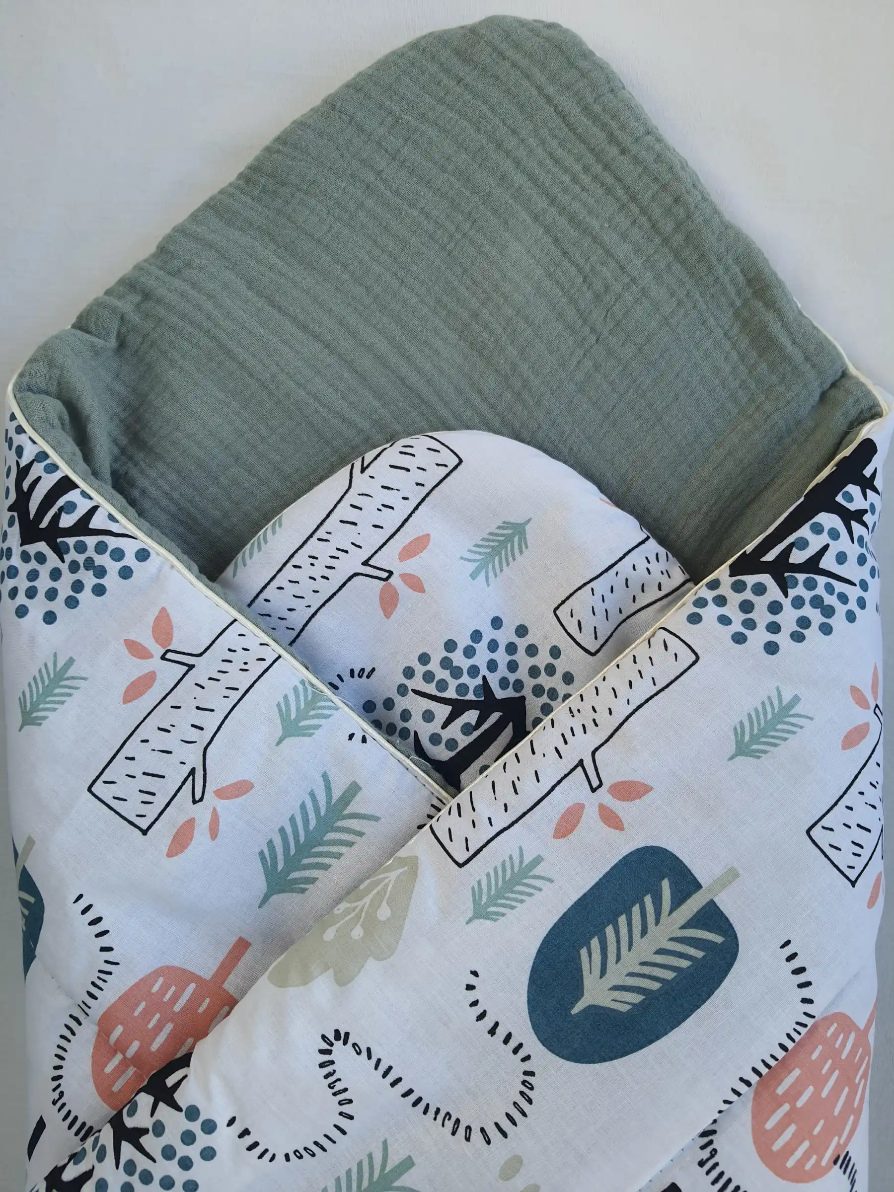 Υπνόσακος φάκελος δύο όψεων από βαμβάκι και μουσελίνα με κλείσιμο velcro και χρήση 3 σε 1. Πρακτικός για το σπίτι και για τη βόλτα.