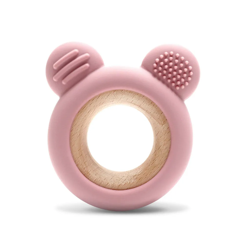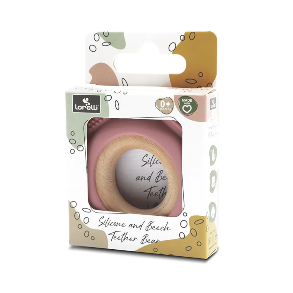 Μασητικό σιλικόνης & ξύλο Οξίας Bear – Ροζ